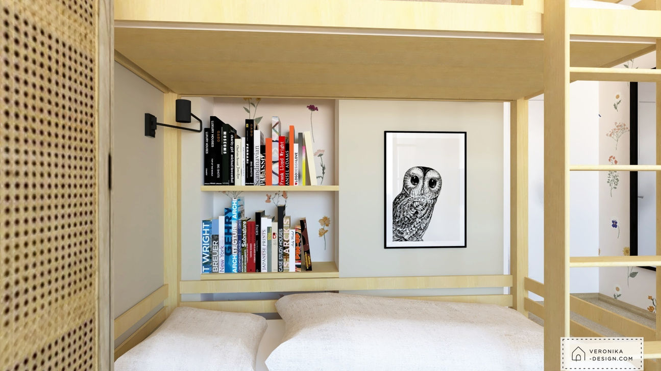 Mají zde malý obývací pokoj s patrovou postelí, a maminka má vlastní ložnici, do které můžete nahlédnout ZDE.